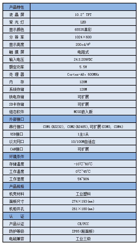 TPC1061Ti,是一套以先進(jìn)的Cortex-A8 CPU為核心(主頻600MHz)的高性能嵌入式一體化觸摸屏。該產(chǎn)品設(shè)計采用了10.2英寸高亮度TFT液晶顯示屏(分辨率1024×600),四線電阻式觸摸屏(分辨率4096×4096)。同時還預(yù)裝了MCGS嵌入式組態(tài)軟件(運(yùn)行版),具備強(qiáng)大的圖像顯示和數(shù)據(jù)處理功能。