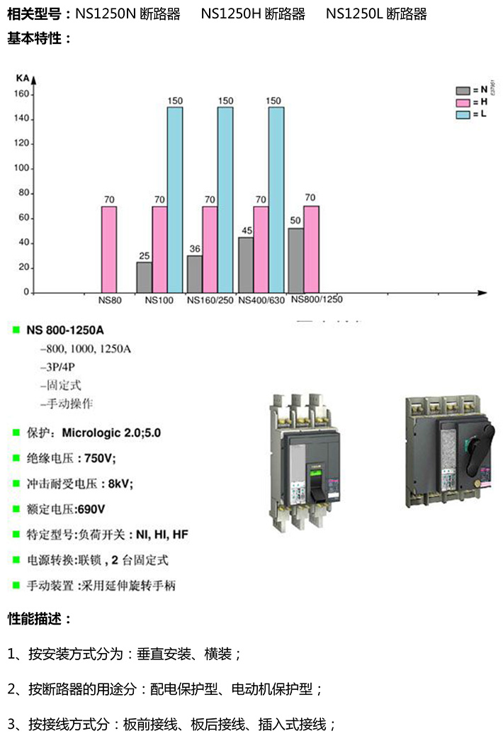 塑殼斷路器NS系列塑殼式斷路器。其設(shè)計(jì)體現(xiàn)了限流原理和制造技術(shù),是有結(jié)構(gòu)好、全模塊化等特點(diǎn)。適用于交流690V,頻率50-60Hz,額定電流12.5A~1600A的電力線路中短路和過載保護(hù)之用。額定絕緣電壓達(dá)690V在正常情況下作不頻繁的閉合或斷開之用,也可作鼠籠式電動(dòng)機(jī)的不頻繁起動(dòng),運(yùn)轉(zhuǎn)中中斷、過載以及在電動(dòng)機(jī),短路及欠電壓時(shí)起保護(hù)之用。