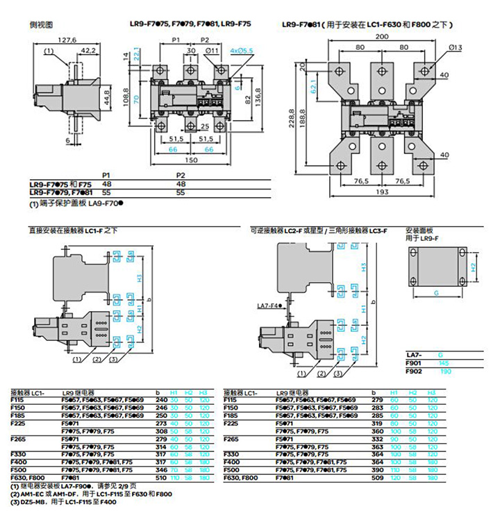 LR9-F 電子保護繼電器直接安裝在 LC1-F 型的接觸器之下。從 30 至 630 A 范圍內(nèi)的繼電器有 8 個額定值。設定表盤可以通過透明保護蓋來鎖定。復位按鈕安裝在繼電器前側(cè)。